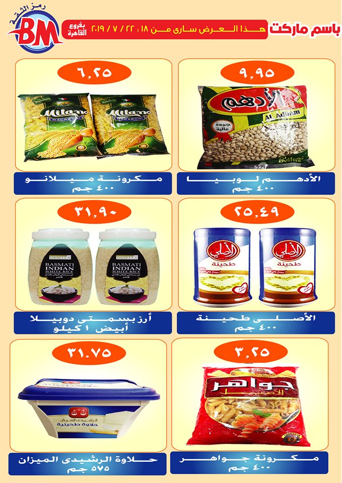 عروض نت تقدم لكم مجلة عروض باسم ماركت الجديدة فى صفحة واحدة Bassem-Market – فرعى مصر الجديدة و مدينة الرحاب – من 18 يوليو 2019 حتى 22 يوليو 2019 اوحتى نفاذ الكمية.