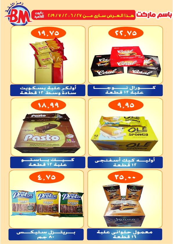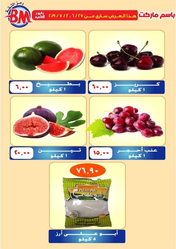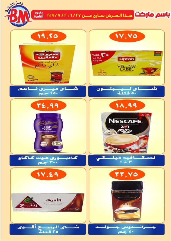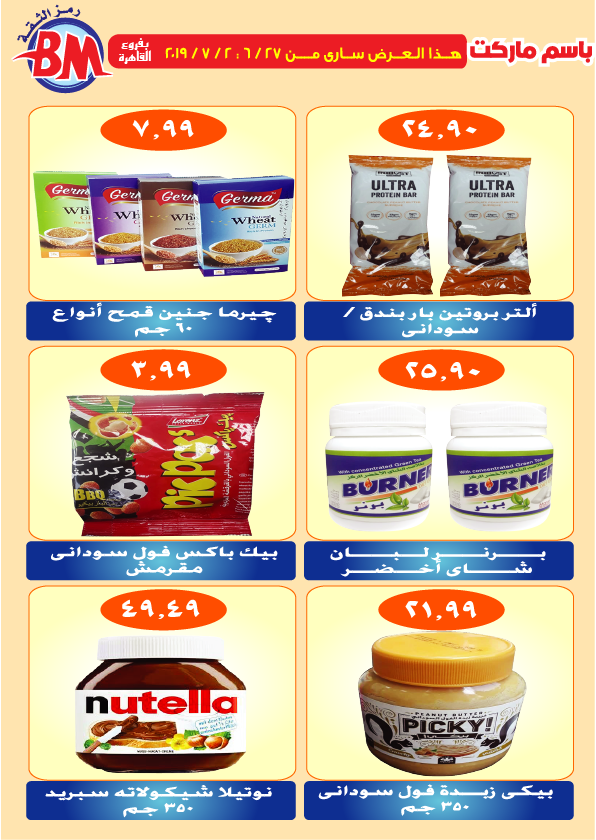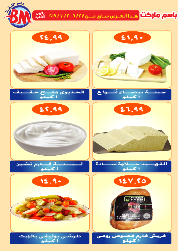 عروض نت تقدم لكم مجلة عروض باسم ماركت الجديدة فى صفحة واحدة Bassem-Market – فرعى مصر الجديدة و مدينة الرحاب – من 27 يونيو 2019 حتى 2 يوليو 2019 اوحتى نفاذ الكمية.