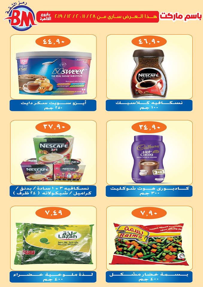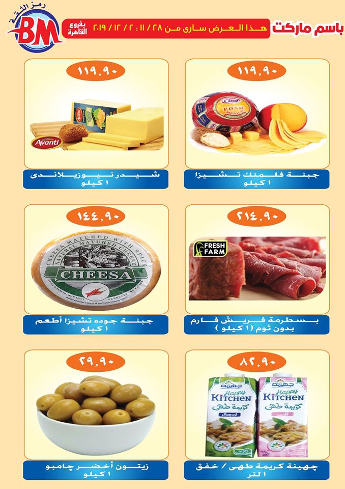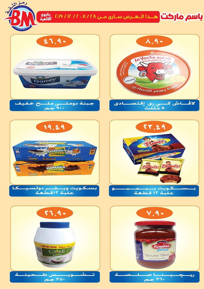 عروض نت تقدم لكم مجلة عروض باسم ماركت الجديدة فى صفحة واحدة Bassem-Market – فرعى مصر الجديدة و مدينة الرحاب – من 28 نوفمبر 2019 حتى 2 ديسمبر 2019 اوحتى نفاذ الكمية.