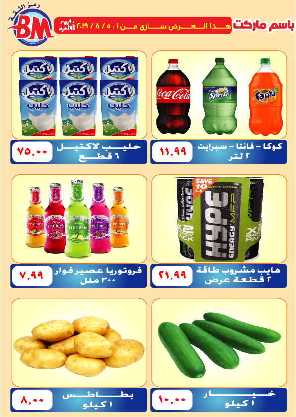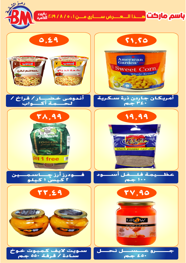 عروض نت تقدم لكم مجلة عروض باسم ماركت الجديدة فى صفحة واحدة Bassem-Market – فرعى مصر الجديدة و مدينة الرحاب – من 1 اغسطس 2019 حتى 5 اغسطس 2019 اوحتى نفاذ الكمية.