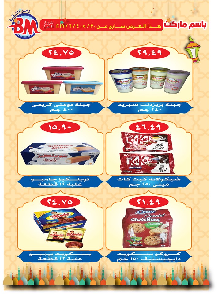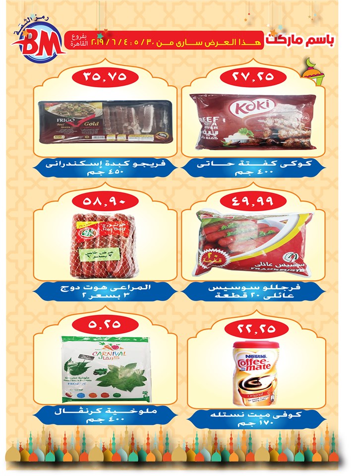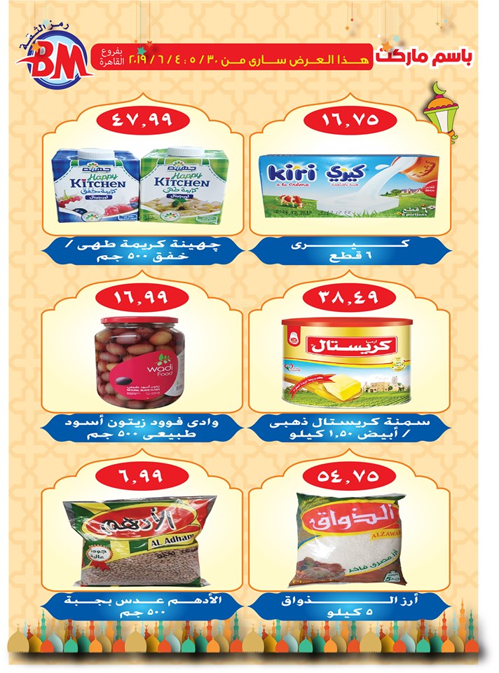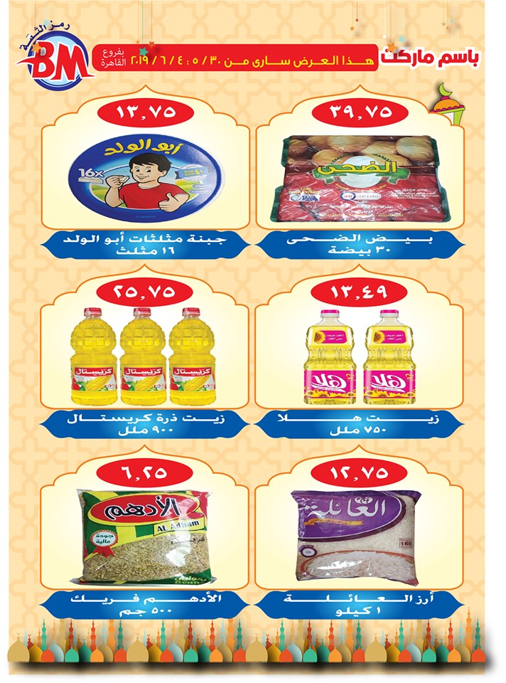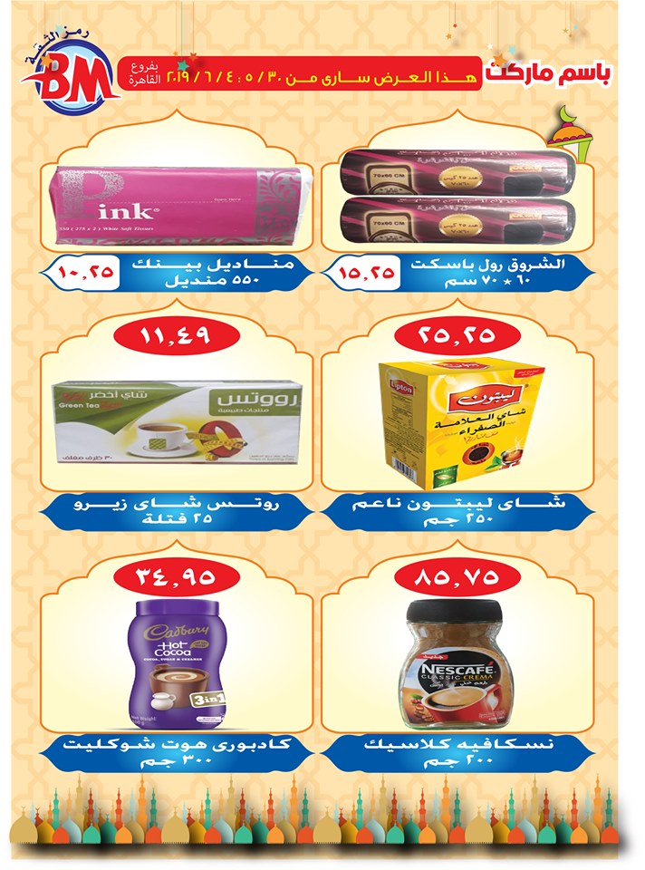 عروض نت تقدم لكم مجلة عروض باسم ماركت الجديدة فى صفحة واحدة Bassem-Market – فرعى مصر الجديدة و مدينة الرحاب – من 30 مايو 2019 حتى 4 يونيو 2019 اوحتى نفاذ الكمية.