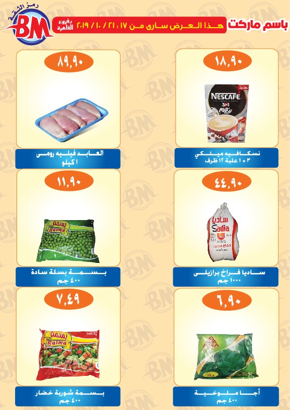 عروض نت تقدم لكم مجلة عروض باسم ماركت الجديدة فى صفحة واحدة Bassem-Market – فرعى مصر الجديدة و مدينة الرحاب – من 17 اكتوبر 2019 حتى 21 اكتوبر 2019 اوحتى نفاذ الكمية.